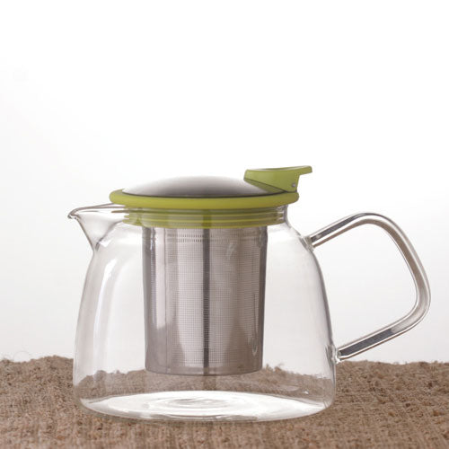 This stylish bell-shaped teapot with a lime-green lid from ForLife is perfect for showcasing the dance of tea leaves as they unfurl. The teapot comes with an extra-fine, stainless steel basket infuser with heat resistant handle that is easily accessible to control the infusion time.
