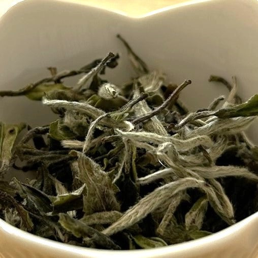 White Peony (Bai Mu Dan) is a traditional style of white tea originating from China. Our White Peony is a high grade, harvested in mid-April 2025 from a picking of one bud and one leaf and carefully handcrafted by the Mei family.